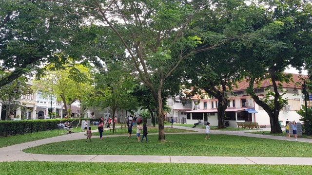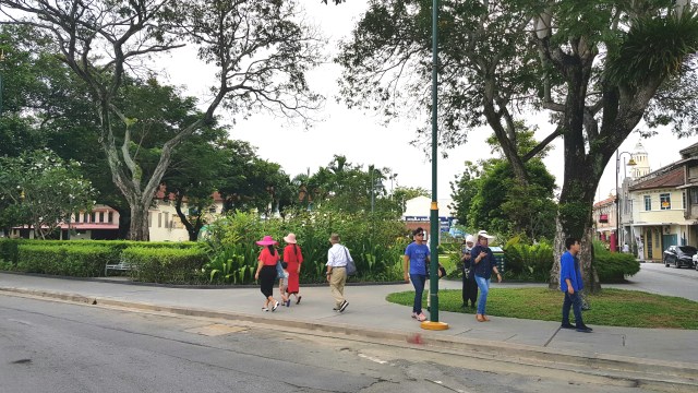 I finally had the opportunity to visit Armenian Park in George Town, Penang. This pocket park is located at the corner of Lebuh Armenian and Lebuh Acheh. It is very well-shaded and lush with the greens. The foot paths are great for strolling and the open lawn areas are perfect for children to run and play. I visited around 3.30 pm on a week day during a school holiday. So it was a pretty good sight to see families, children and tourists at the park.