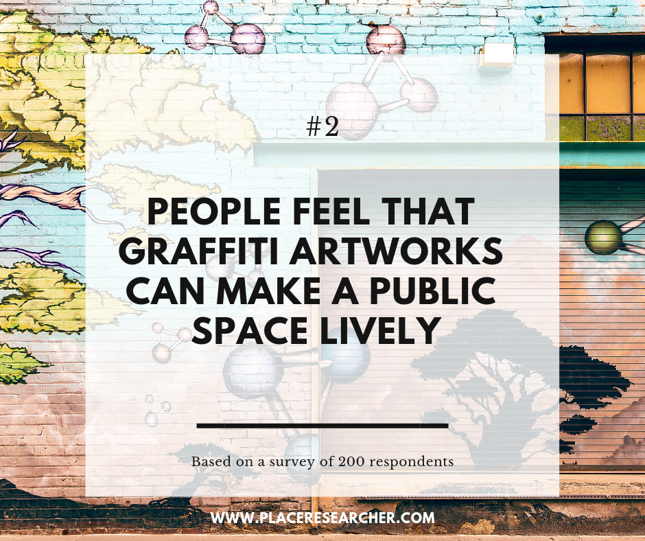 The survey respondents felt that public art is an artwork that delivers a certain message to the public, through the colours, forms, textures and patterns. While about half of the respondents (55%) agreed that graffiti can be considered as a form of public art, about one-third of them (35.5%) expressed that it would depend on the artwork.